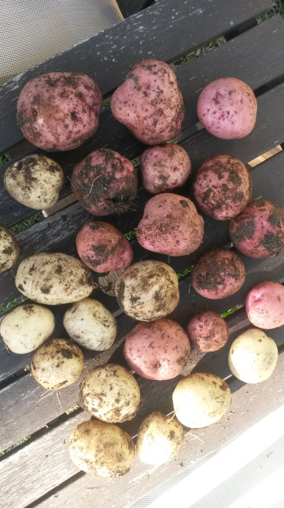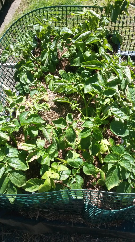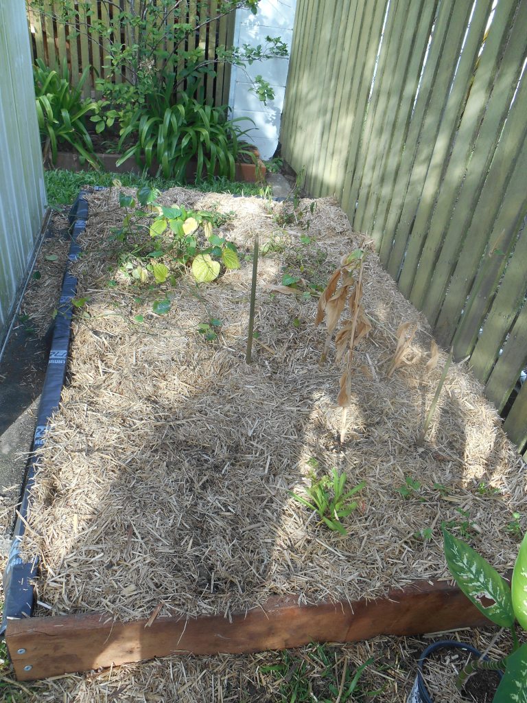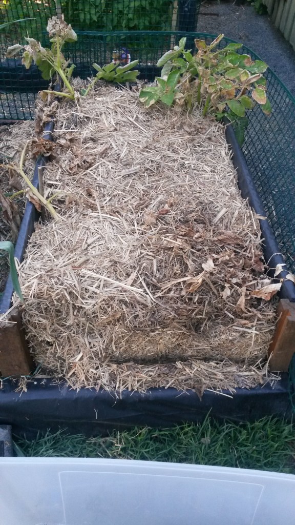 Another experiment that didn’t last (pictured below) was this cool section of a garden bed that Mr T constructed for growing potatoes. The idea was that it had a couple of removable sides so it made the potatoes easier to access. It actually worked really well but we decided that the harvest we got wasn’t really worth the garden bed space. I am going to try growing potatoes again, but use tater bags this time.