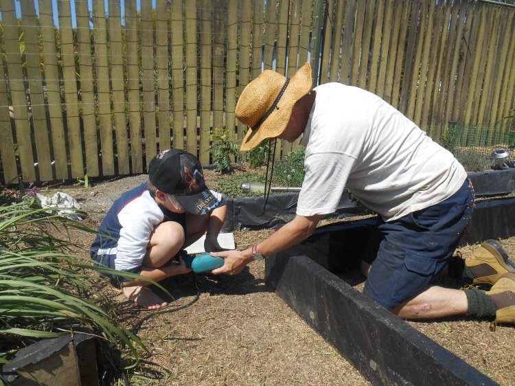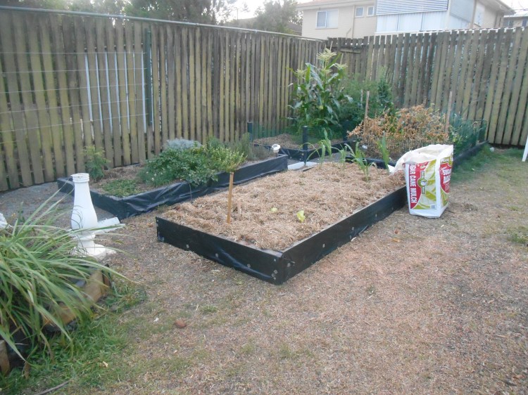 The narrower garden bed in the last of the above photos ended up being redone to make it wider and so that we could walk behind it. And then we soon realised that 2 vegie/herb gardens was not enough and so Mr T got onto constructing a few more.