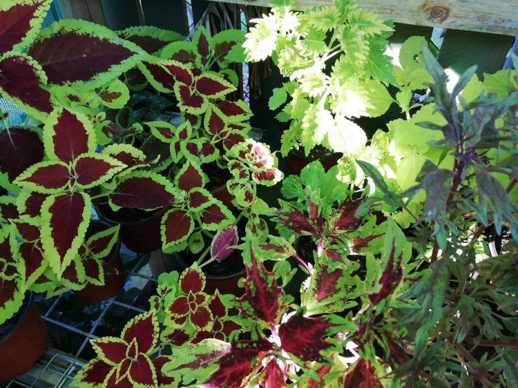 A few other photos – my growing coleus collection and a selection of other plants that I have propagated that are waiting for me to decide what to do with them 😉