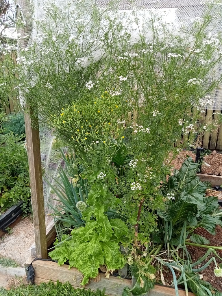 What else… the coriander has gone to seed, but that’s ok because I want to try and collect the seed and the root. The bay tree has got lots of new healthy looking growth which is awesome. I love fresh bay leaves. And the zucchini has gone ballistic. I think I put three in and really only need two for us.