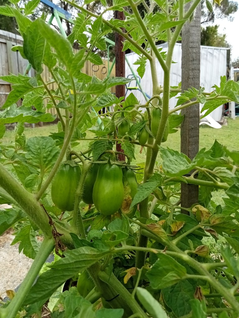 One thing I haven’t been overly impressed with is my San Marzano tomatoes. I know I stuffed up with the planting time – I was aiming to grow them over winter but planted them a bit too late so they didn’t do anything until it warmed up again. And even then they haven’t seemed to do too much. I’ve already noticed one drop and look like it was eaten at the end, and on that last photo there looks to be some kind of blemish. I’m sure there’s things I could do to protect them, but I have to admit I like plants that are low maintenance! The Mini Amish tomatoes didn’t need anything. I have some of those and Red Fig tomatoes growing in pots so at least I have those if the San Marzano ones turn out to be a fail.