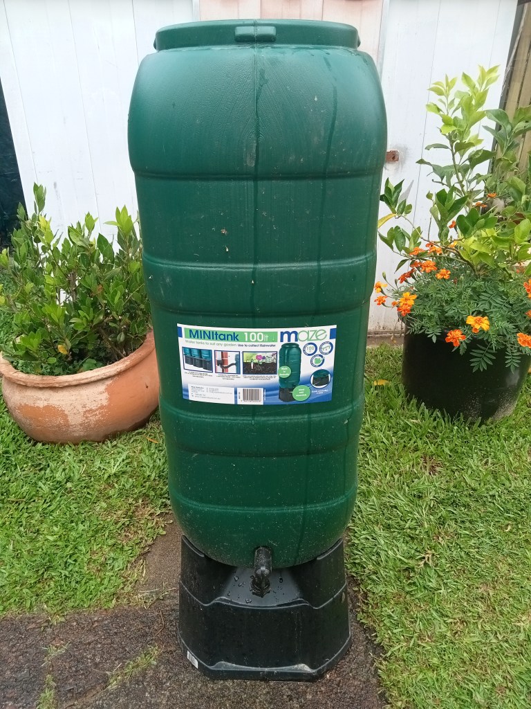 Our water tank ran out of water this month but then over the past week and a bit we have had lots of rain and it’s full again! We also had lots of water in the buckets and tubs that I left out so instead of wasting it I grabbed the mini water tank that’s been sitting around the side for about a year and manually filled it up. I used a towel to try and filter as much dirt and stuff out as possible and I managed to pretty much half fill it – so that 50 litres I can use to water all the plants I’m propagating before I even need to touch the tank water. I was pretty proud of that idea! The tank is destined to be installed to catch rain water from our courtyard roof, but I think I might get another just so I can manually fill it.