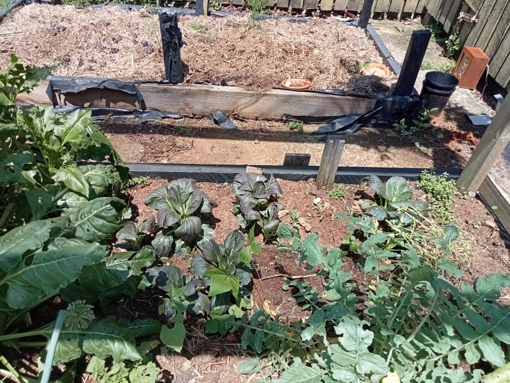 Other than the tomatoes everything else has been growing along fine. I thought the pak choi I put in was all going to get eaten, but turns out if you plant enough there is enough to share with the garden critters 😉 The zucchini and beans have produced well, although I put too many zucchini plants in (we really don’t need more than 1 or 2) and so many just rotted before I was able to pick them. The zucchini plants died with the recent heavy rain so I will take those out and put in the two seedlings that I prepared earlier.