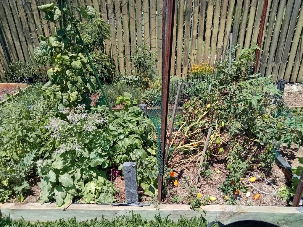Will I try again? Yes. But I’m going to sow the seeds in early Autumn and get them started in a green house situation before planting them. Actually I might experiment and sow some in March, some in April, some in May and see which works the best. Apparently when planting out tomatoes you can plant them right up to their seed leaves as they will develop roots along their stems which makes them stronger, so I will do that as well. For now I have some Mini Amish tomatoes coming up that have self seeded so I will see if they produce anything.