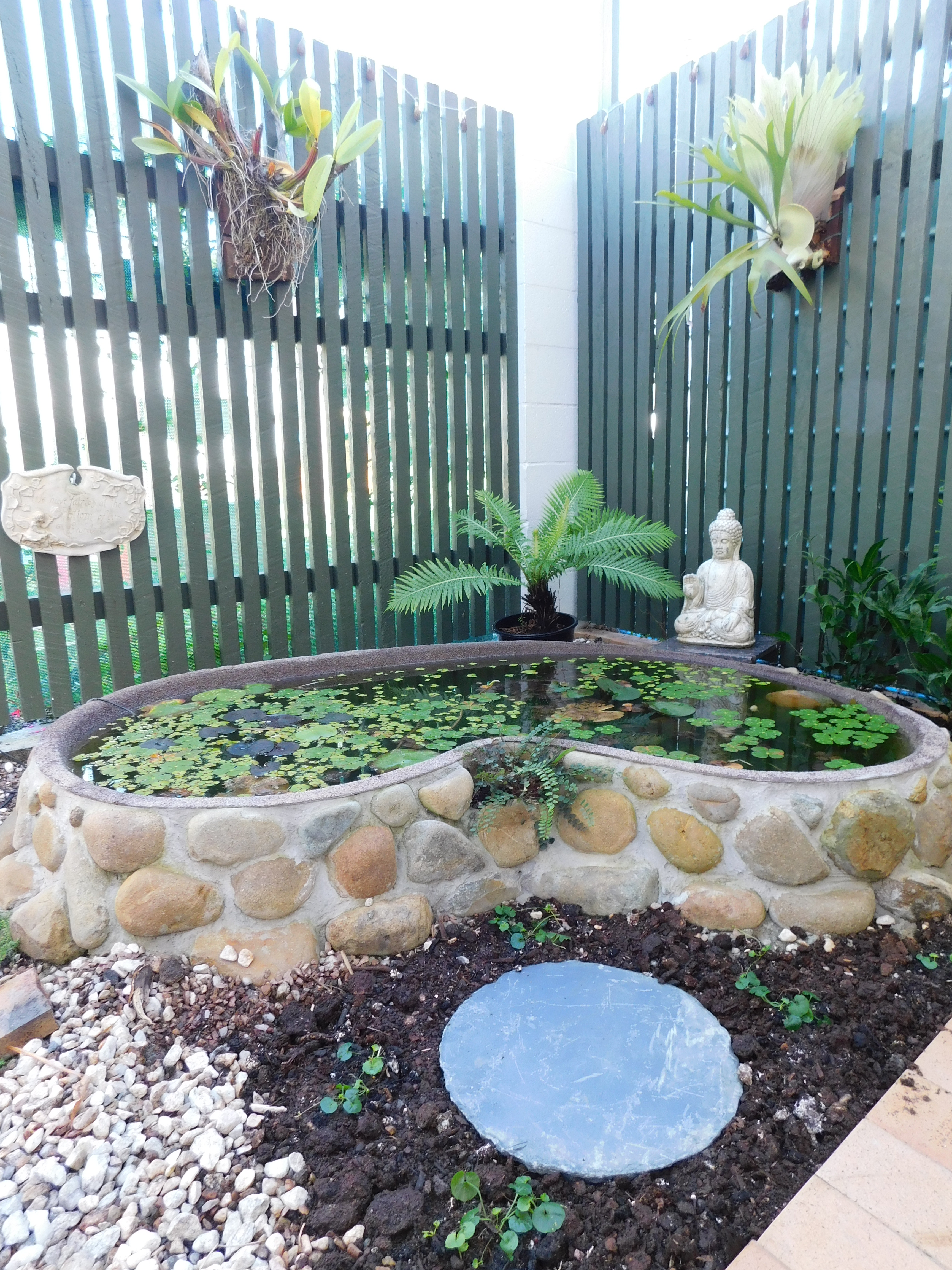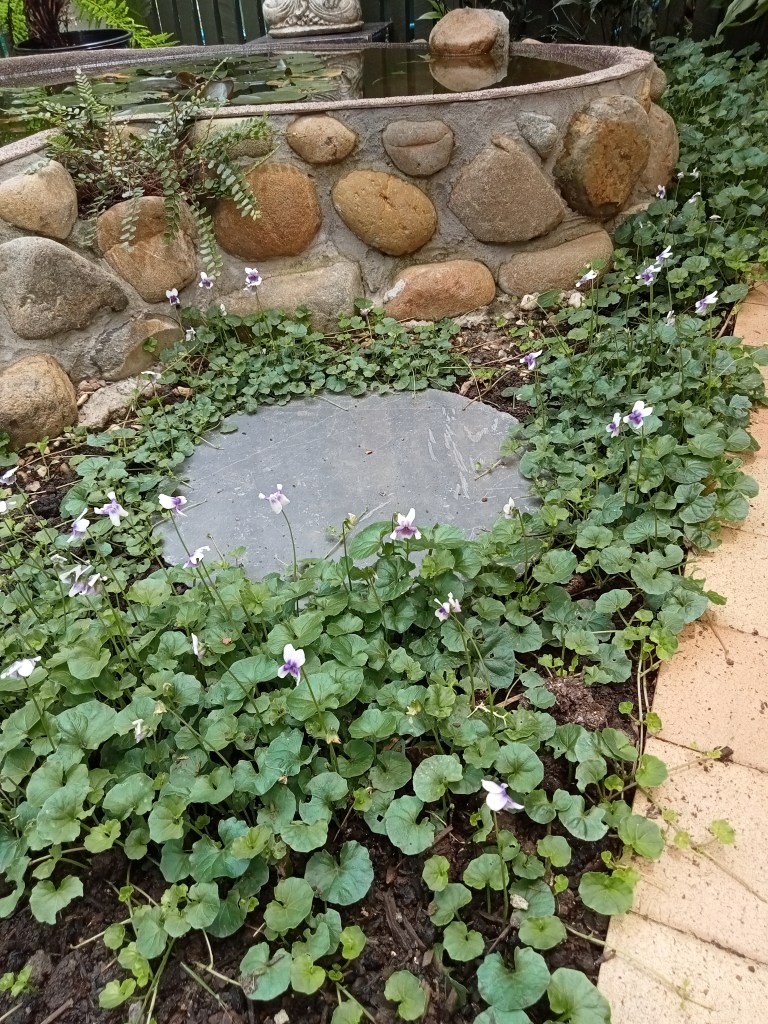 One project that Mr T completed in November was to remove the rest of the white gravel from around the pond, put in more pavers and plant some native violet. I have to say it’s looking pretty good! I’ll take another photo once all the violet has grown in.