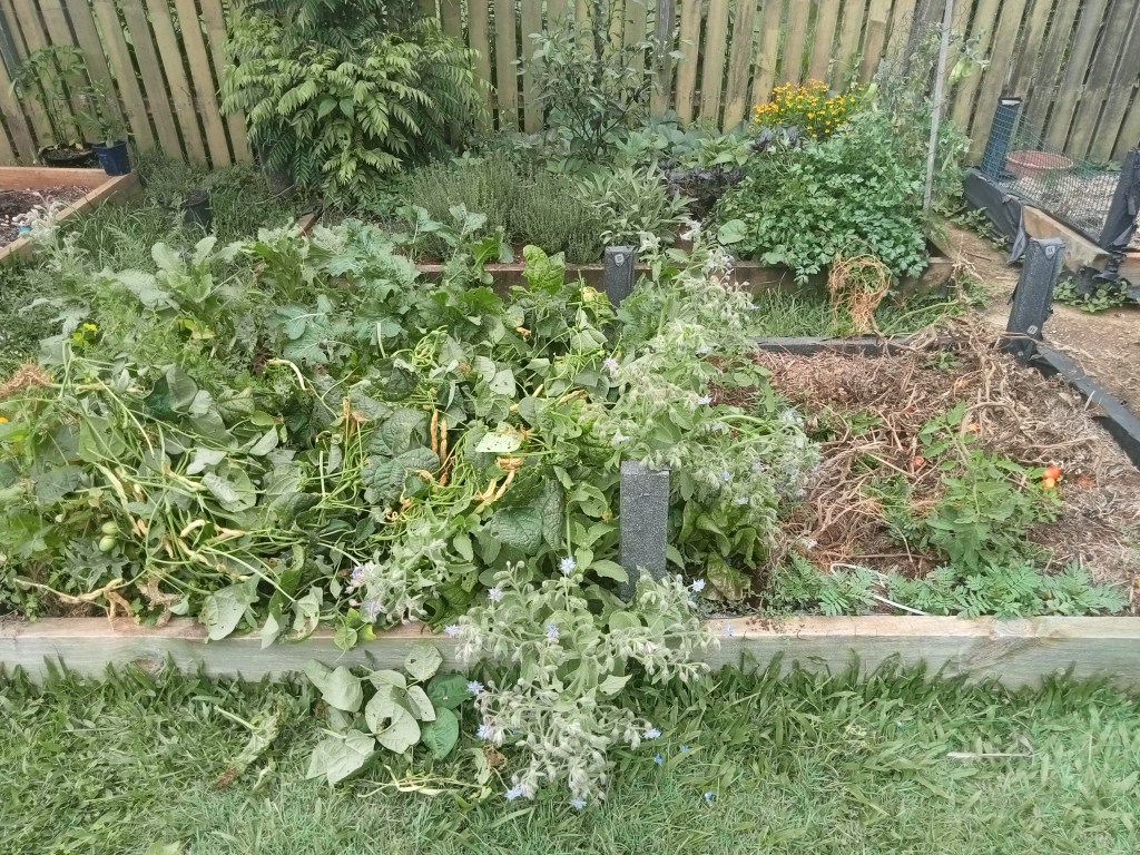 I haven’t been gardening very much – once it started to heat up at the end of October I remembered how much I suffer in the heat & humidity and how in previous years I’ve started to dislike being in the garden when it is too hot/humid. So rather than push through and “just do it” I am going to honour that part of me, let myself stay cool, and the garden can rest over summer. As you can see below, I’ve started to pull plants out and we will dig in some compost, and sow green manure for a cover crop.
