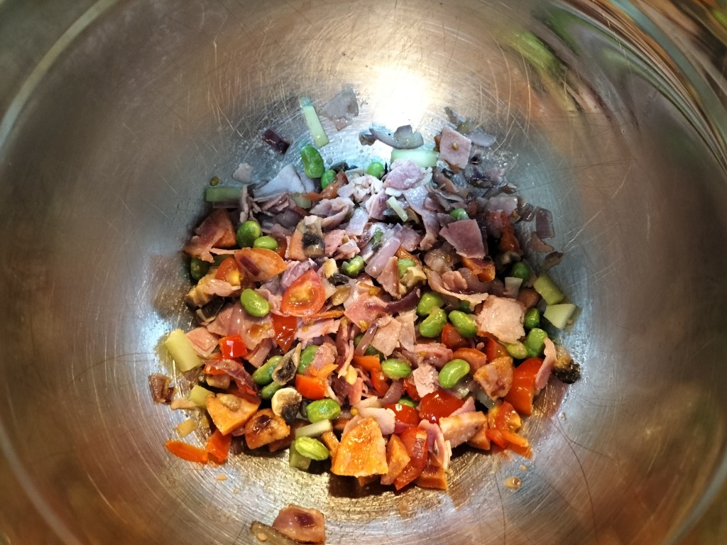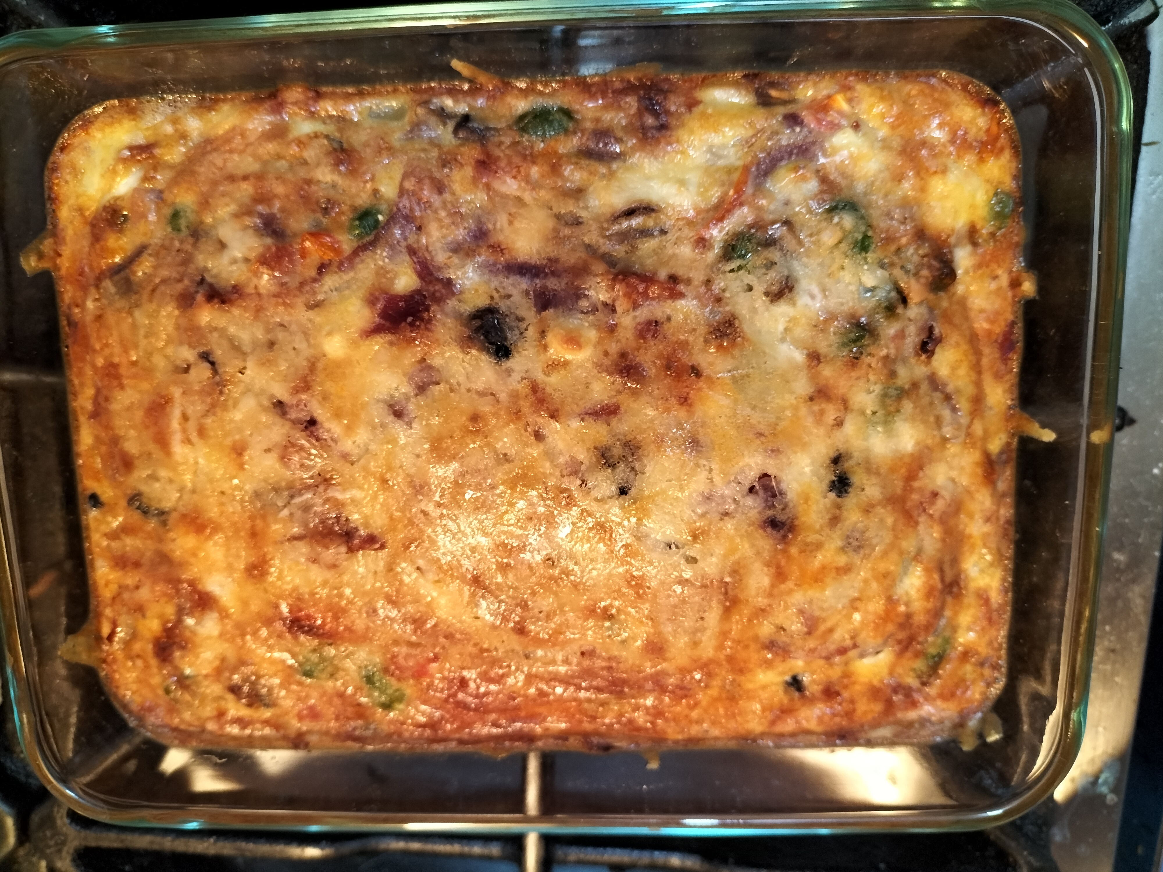 And on the cooking front I made some strawberry jam with strawberries that I had in the freezer from last year. Bought when they were a dollar a punnet; and a frittata with some leftover bits and pieces and veg from the freezer. I normally cook it in muffin trays but thought I’d try in one big tray this time. I’ll go back to the muffin trays next time as it’s easier to manage if you are freezing for breakfasts/lunches later.